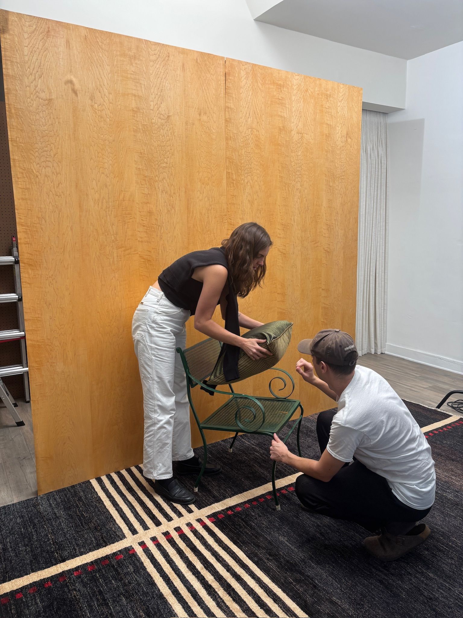 So that's exactly what we did. Most of the chairs and furniture in this shoot are thrifted finds I reworked, and many of them will be available for purchase at Office Supplies next year. Love this satisfying circularity for us. As in, the props aren't just props; they're part of the broader world we're building.