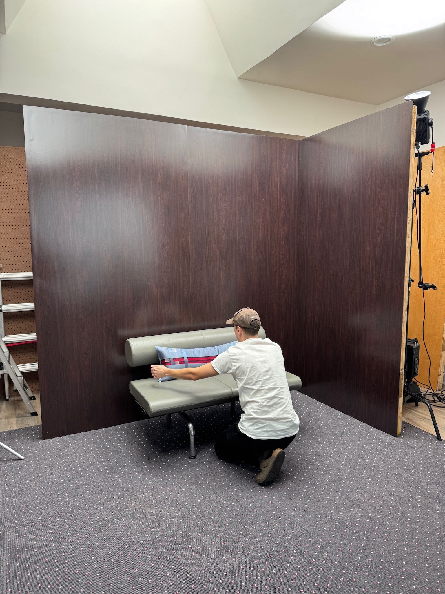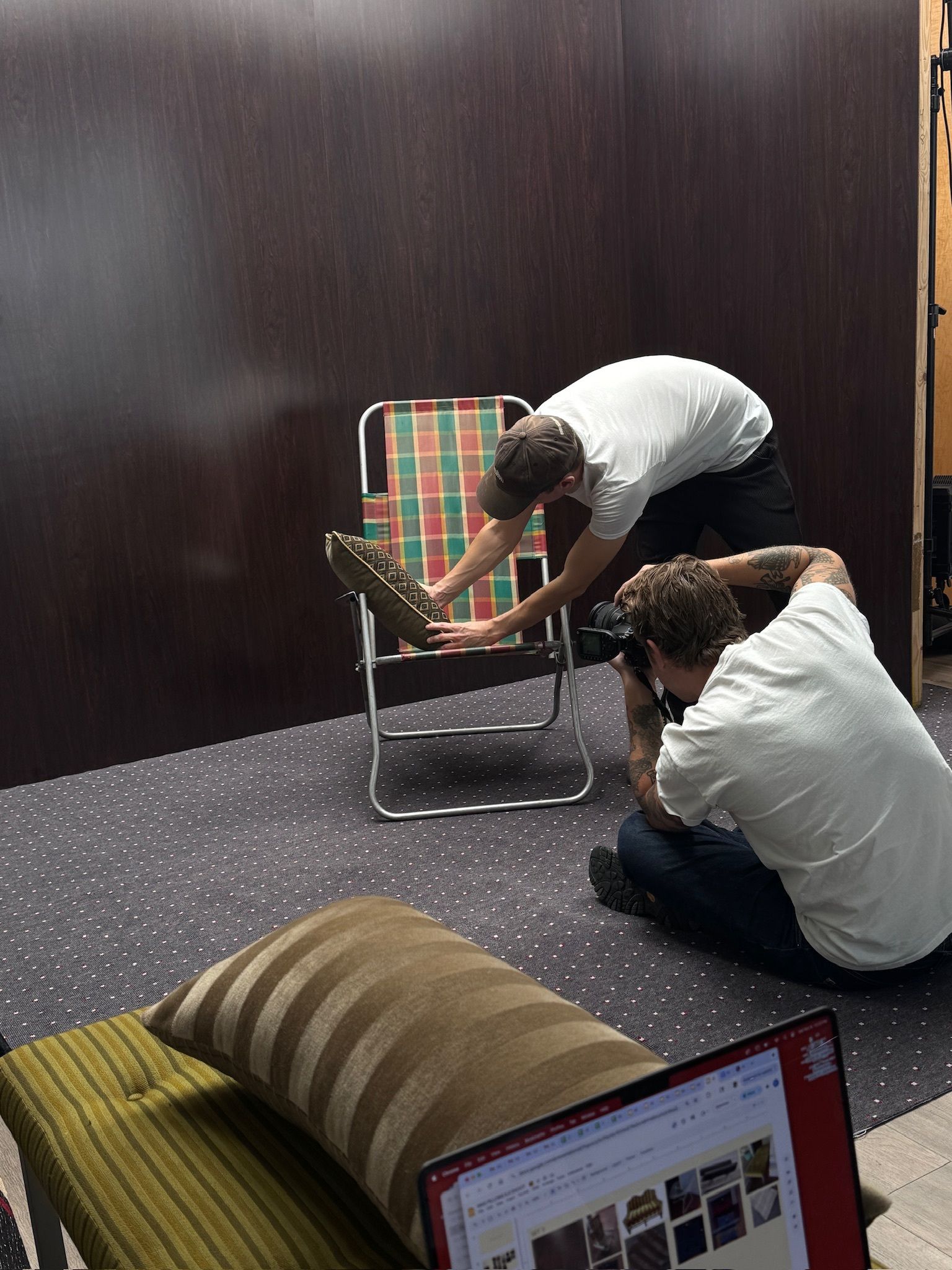 The big upgrade this time was that everything was prebuilt. Since we used Yaro’s studio, we could prep the walls earlier in the week rather than assemble them in a chaotic morning scramble. On shoot day, we simply walked in and got to work. It was… peaceful? Like, I didn't know shoots could be so chill.