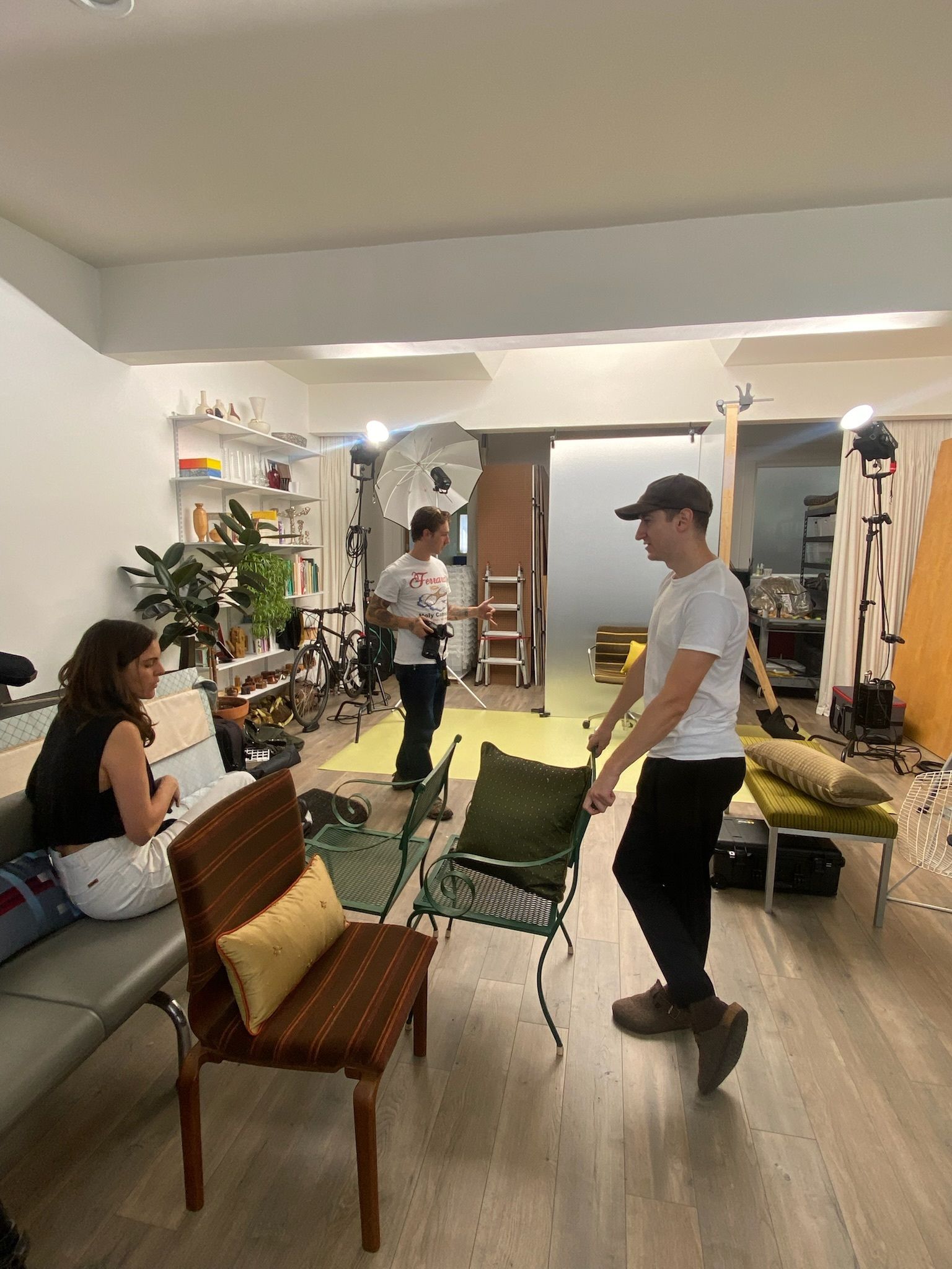 I lead the art direction and styling, with Yaro handling production design. Julien Sage was behind the camera. He's so great that I build the shoot schedule around his availability. Maren kept us organized, and our intern Anjalika jumped in exactly where needed. Everyone has worked together like a little creative pit crew. We switched sets, staged props, fluffed pillows, and never lost momentum.