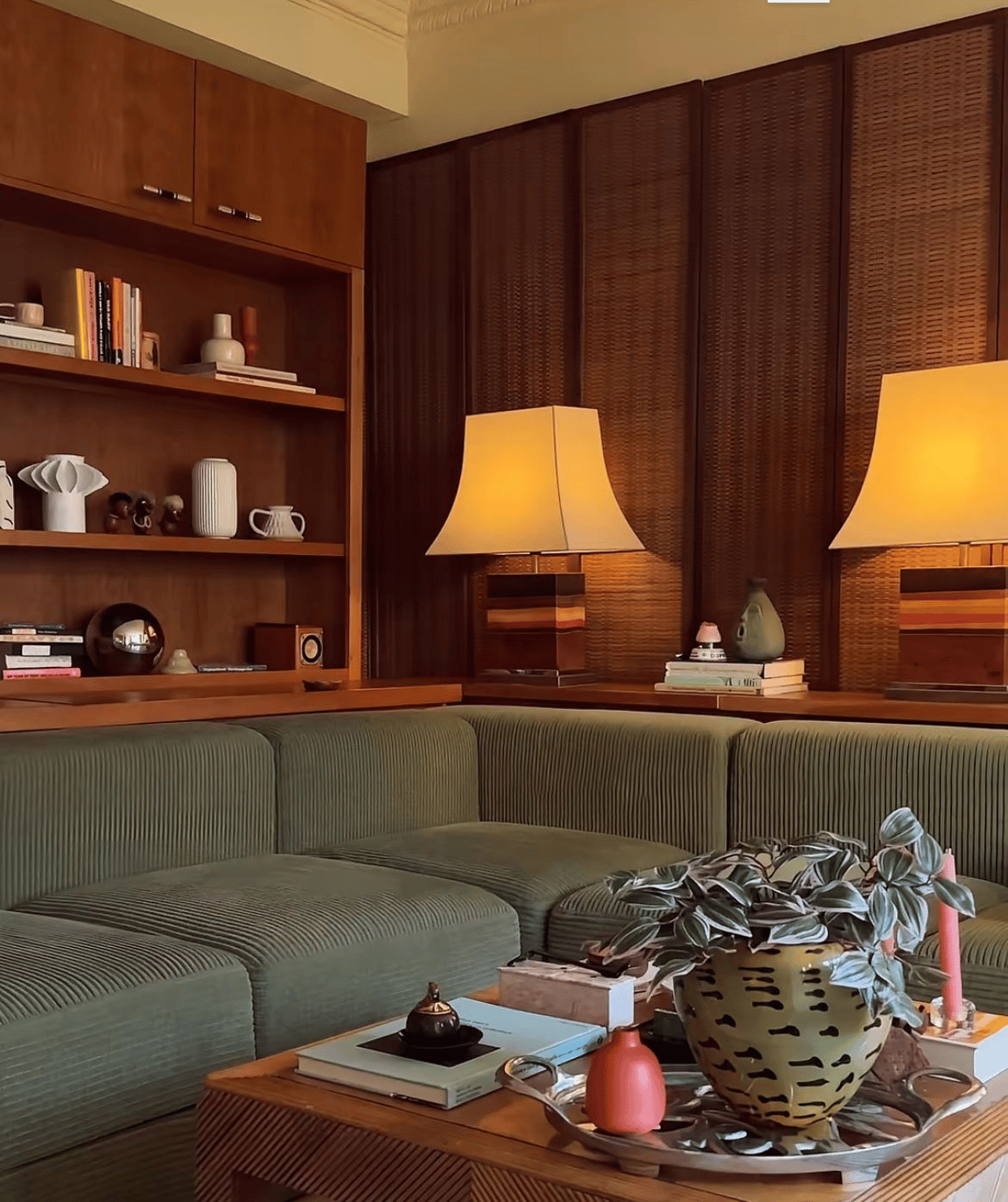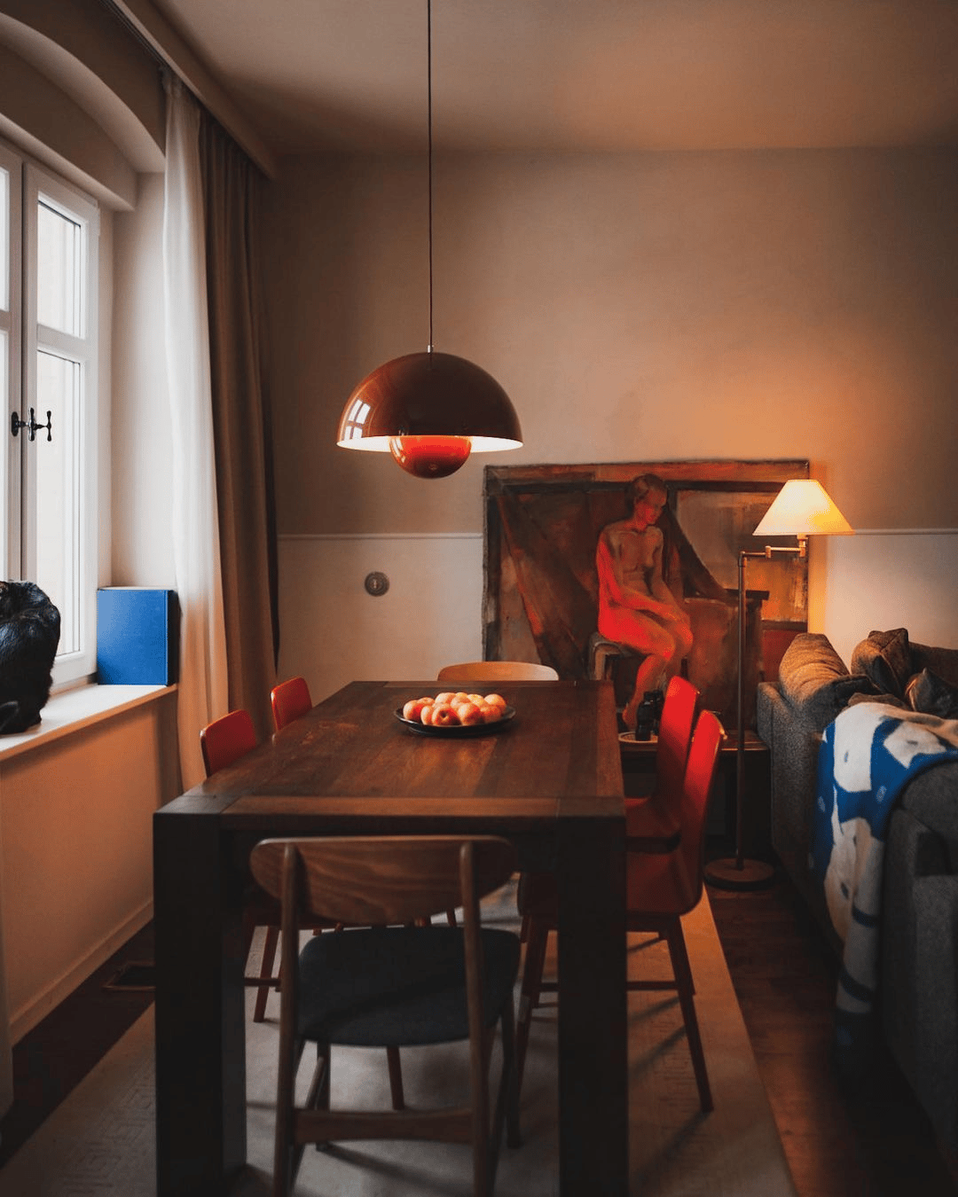 Keep light at eye level or lower. I kid you not, this is the single biggest shift you can make in terms of mood and vibe. Eye-level lighting feels cozy, whereas overhead lighting feels like you’re taking the SATs.